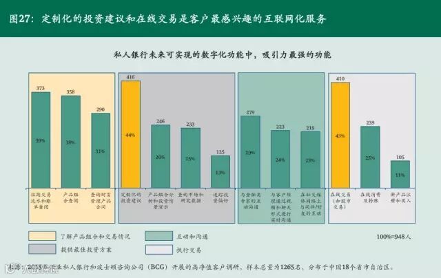 ,从“了解产品组合情况”到“执行交易”。其中,“定制化的投资建议”与“在线交易”是呼声最高的数字化服务,分别有超过40%的客户对此类数字化服务有较高期待(参阅图27)。