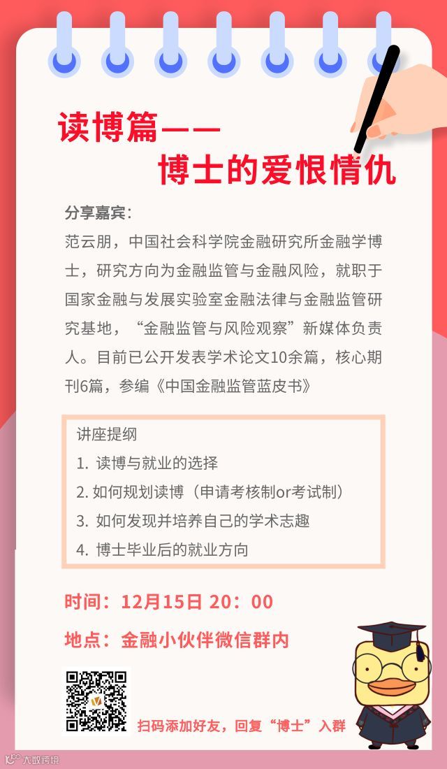 值此选择之际,金融小伙伴特地为大家邀请了优秀博士前辈中国社科院金融研究所金融学博士范云朋,为你的博士选择答疑解惑!