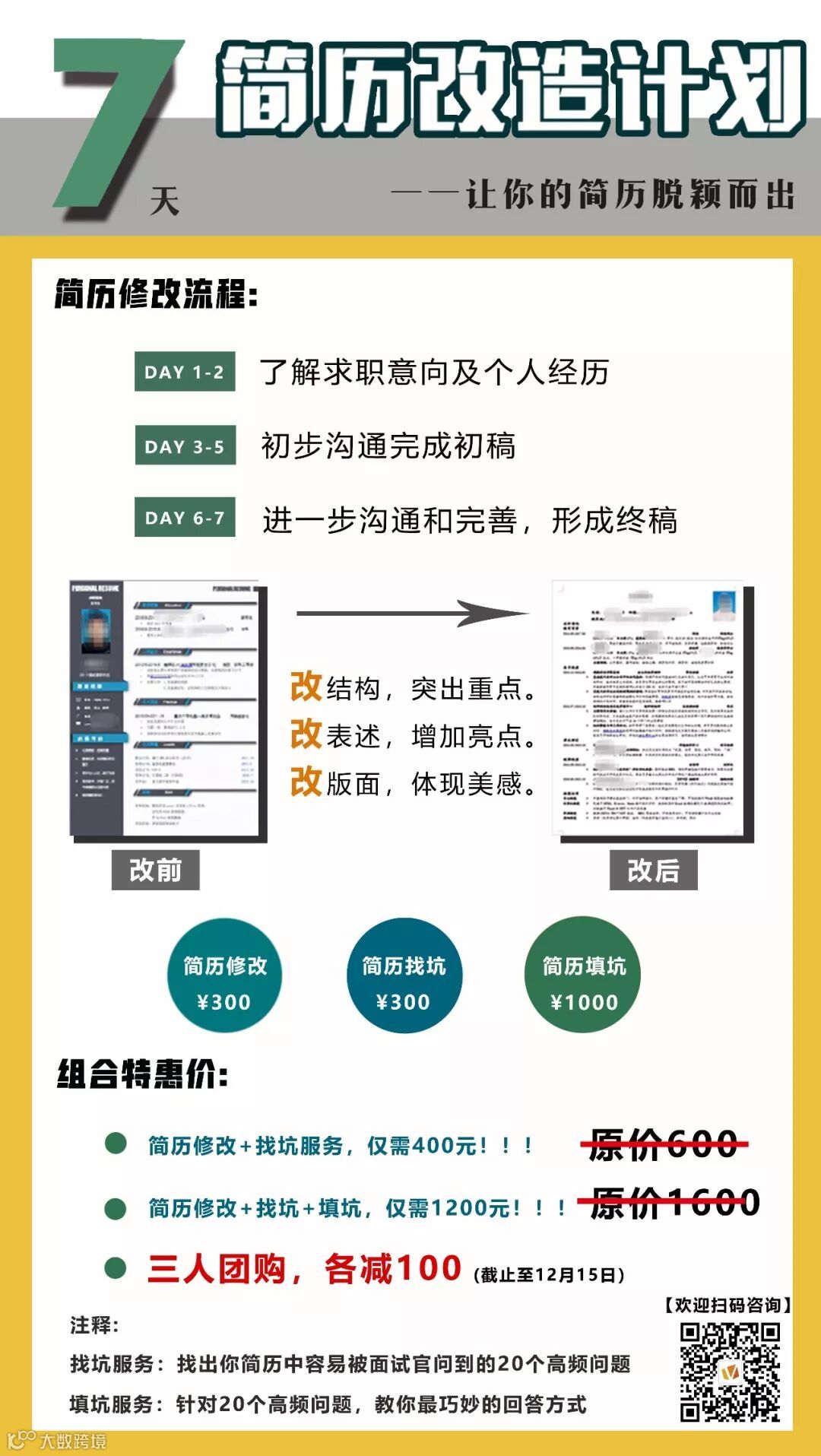 最后,用两种文案风格给大家介绍一下我们的简历修改服务↓↓↓
