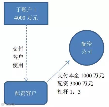 注意,上述母账户开立后,不能随便增减资金。因此,客户提交的1000万元本金,并不是打入这个母账户,而是直接支付给配资公司(或其指定的他人账户)。配资公司招揽了10个客户后,收到10个客户的本金共1亿元(每个客户本金1000万元)。然后从母账户向10个子账户中各划入4000万元,交给客户使用。