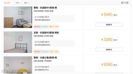 上海?陆家嘴的一居室,单间卧室以及两居室的价格更高: