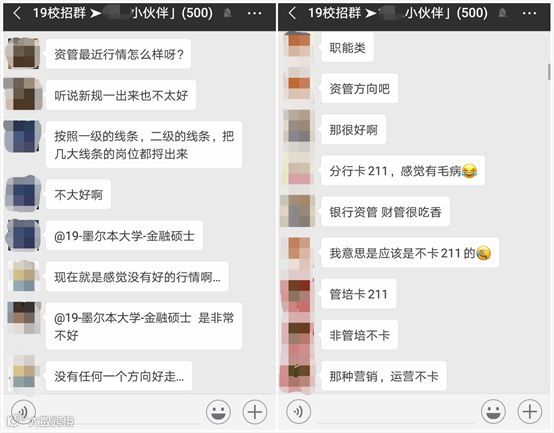 “四大”、“银行”、“资管”、“机构销售”、“海归”这几个主题荣登“高频讨论”榜首,并且同学们对这几个行业或职位的矛盾心理最为强烈,比如: