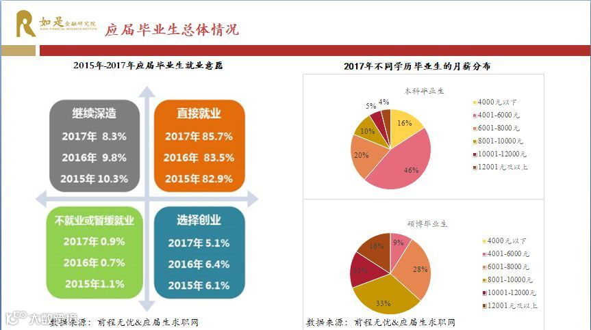 我看数据统计下来,我觉得确实很有意思,我们当时的直观感受是,我觉得博士很难找工作,当时我们聊这个事儿的时候,统计下来,在整个2017年的调查过程当中,我们看到硕士进入这个行业的占90%以上。