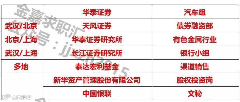 【温馨提示】本文所有岗位同样收录在小金窝网站(www.xiaojinwo.com)中,您可对所有感兴趣的岗位【一键投递】至对方邮箱。