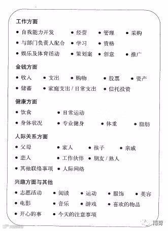 图片出自书《晨间日记的奇迹》,在这些方面你有什么样的目标?