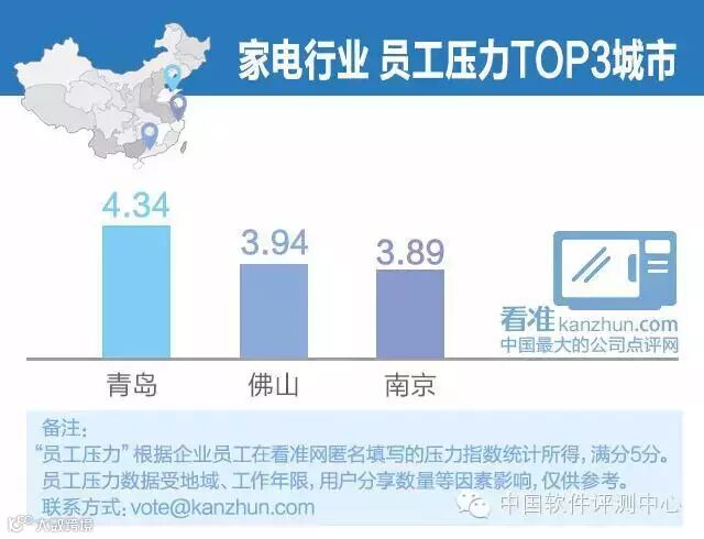 看准网根据企业员工匿名分享的压力情况,梳理出十大行业员工压力最大的城市。员工压力值满分5分,分数越高代表压力越大。看看你中枪了没?