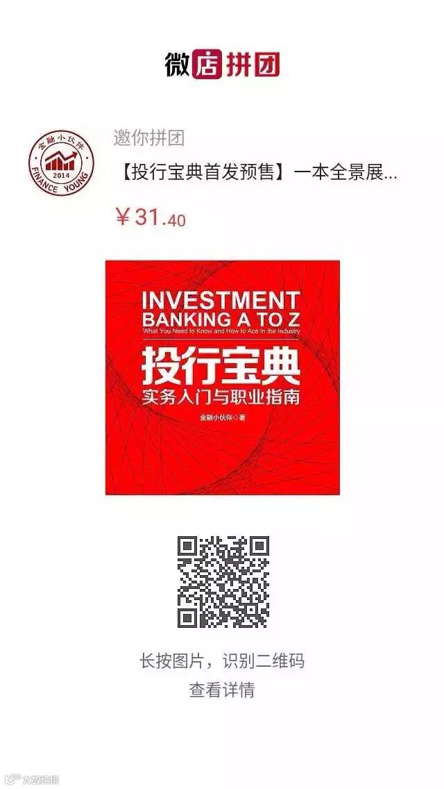 【福利一】:现在立即下单《投行宝典:实务操作与职业指南》,即可享受单本7折优惠。