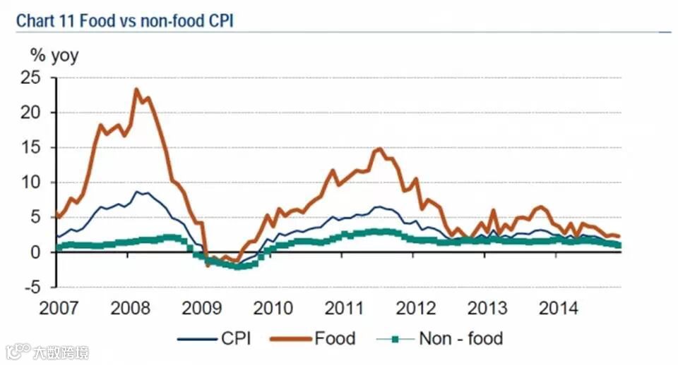 10. 11月食品价格环比(非季调)下跌0.4%,因暖冬保证了新鲜蔬果的充足供应。
