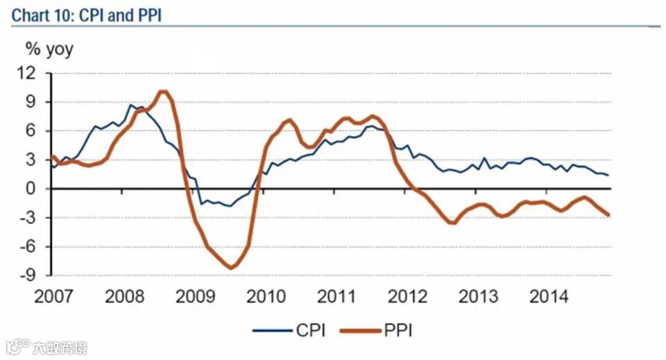 9. 11月CPI同比增长1.4%,创2009年11月以来最低,前值1.6%,PPI同比下降2.7%,连续33个月下滑,前值下降2.2%。