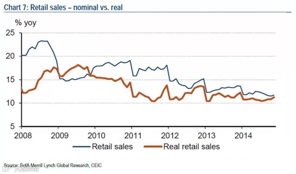 7. 受益于“光棍节”(11月11日)商品促销活动,11月社会零售同比增速升至11.7%,前值11.5%,扣除价格因素实际增速11.2%。