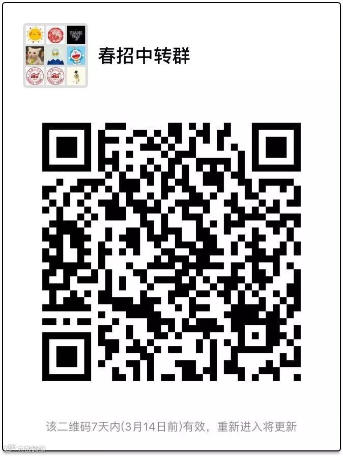 2018届的同学可以扫描下方二维码加入校招群,获取更多校招信息,为您的求职之旅助力