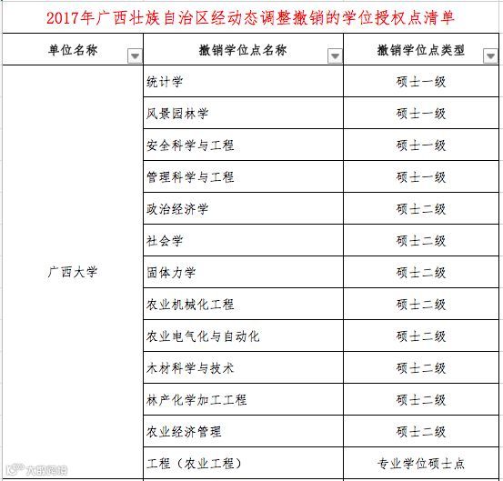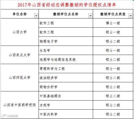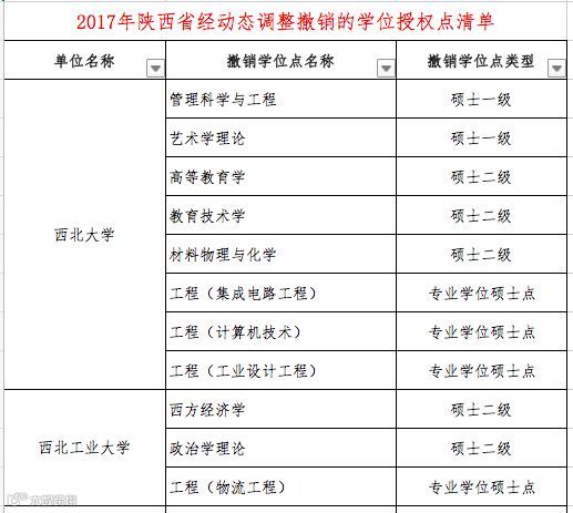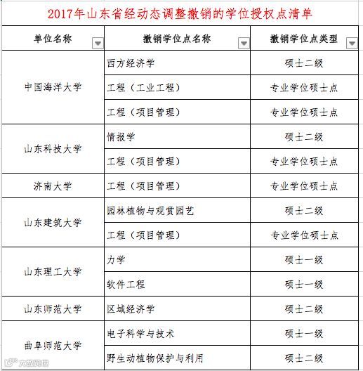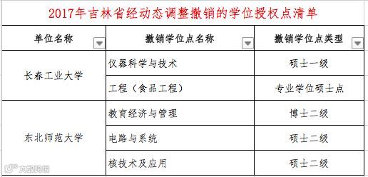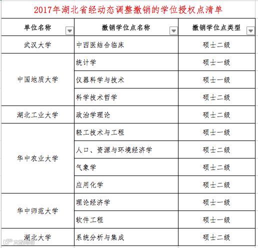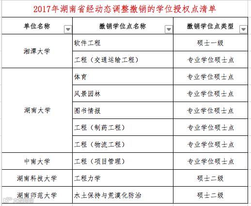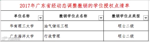 本次“通知”中公布了2017年经动态调整“撤销的学位授权点清单(分省)”和”增列的学位授权点清单(分省)“。