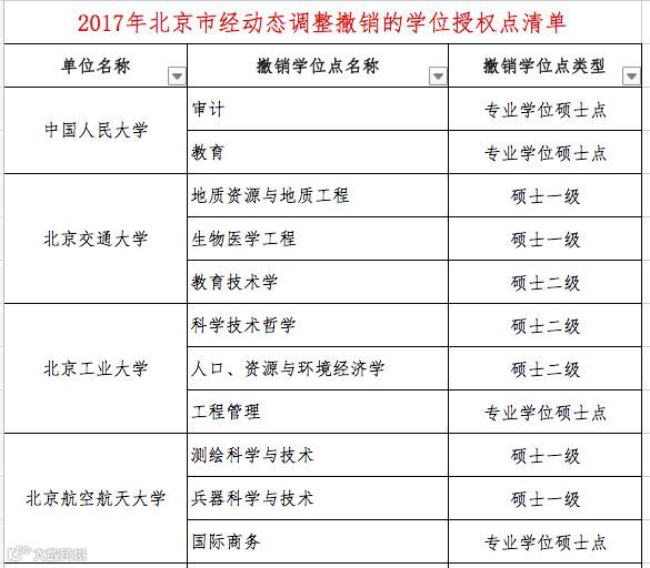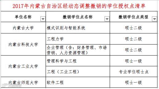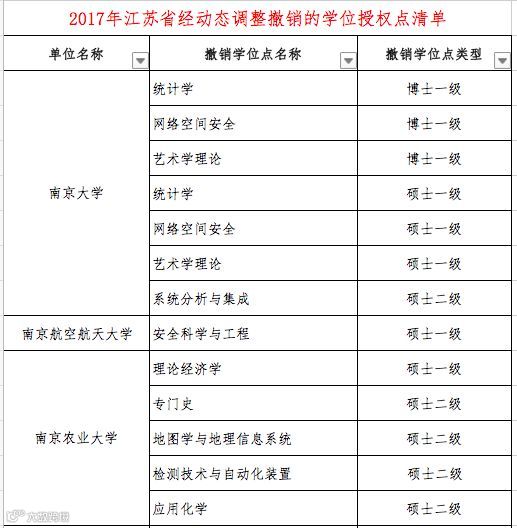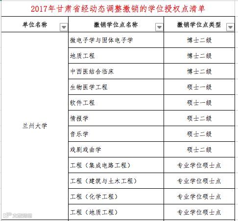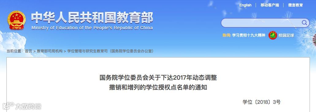 教育部官网显示,近日,国务院学位委员会发布"关于下达2017年动态调整撤销和增列的学位授权点名单的通知"。