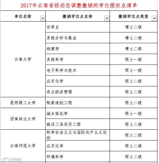 附:2017年经动态调整撤销的学位授权点清单(分省)