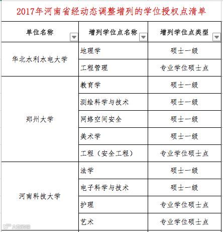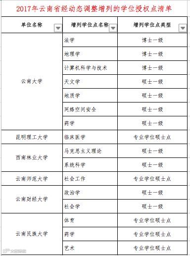 2017年经动态调整增列的学位授权点清单(分省)
