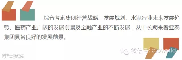 虽然从财务报表数据来看,亚泰集团近年来经营业绩不佳,但是综合考虑集团经营战略、发展规划、水泥行业未来发展趋势、医药产业广阔的发展前景及金融产业的不断发展,从中长期来看亚泰集团具备良好的发展前景。具有较高的投资价值。