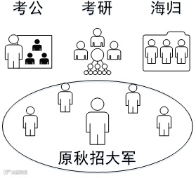 海归大军加入,尤其是英联邦学制毕业的学生大多数是12月毕业的海归。海龟参与春招的比例较高,通过春招获得职位的比例达22.88%。据某大型券商HR估计,由于国外金融市场不景气,今年60万金融海归中有70%有回国就业打算。供求两方面因素叠加让春招成为众多毕业生眼中的“修罗场”,宝宝心里苦!