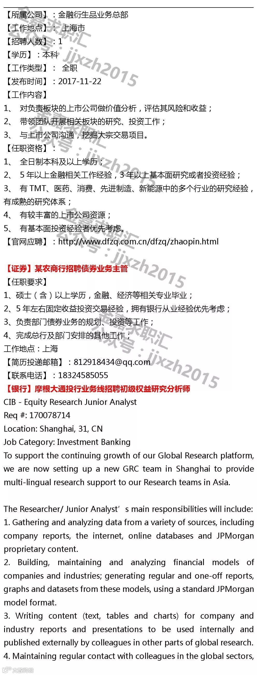 【社招推荐】如需要金融小伙伴推荐匹配的岗位请投递简历至recruit@xiaojinwo.com,邮件标题:岗位方向-姓名-电话-工作年限-求推荐,必须有2年以上正式工作经验,不符合条件的请勿投递,谢谢!我们会结合招聘企业需求,第一时间联系你哦!