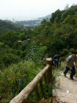 穿过叠翠湖,大家就沿着山路一直走,对于弱不禁风的小编来说,可以说是一直爬。阶梯陡峭,偶尔也有一些女孩子心律不齐的(大家都知道我说的是谁,哈哈),大家都会停下来问候,工作人员也会给予帮助。在岔路口,总会有中队的工作人员等着大家,指引前进的方向。