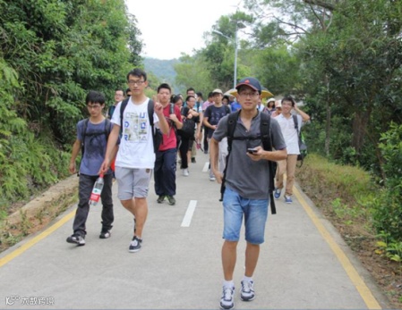 这次组织团队在总负责人罗姐姐的带领下,大家精诚团结,分工协作。甚至考虑到行进过程中可能出现的种种情况,分别安排了领队、中队、收队、救护队、机动队等。然而在活动前一天还是出现了一点bug,窗外“梧桐细雨,瑟瑟其叶,随风摇记忆”(额,是的,小编确实是甄嬛看多了)。正当活动的组织团队担心可能会有很多人不来时,发现第二天大家都不约而同地准时赶到上车地点。小伙伴顿时感到醉了。于是乎,一百左右的年轻人浩浩荡荡地出发了。