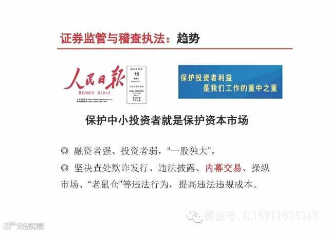 6.最后给大家讲一个故事,季羡林曾给学生讲一个笑话:一个江湖郎中在市集上大声吆喝,叫卖治臭虫的妙方。有人买了这个妙方,打开用纸一层一层包裹得严严实实的纸卷,纸上写着两个字:勤捉。在监管手段和声威日新月异的情况下,与时俱进!天天向上吧!