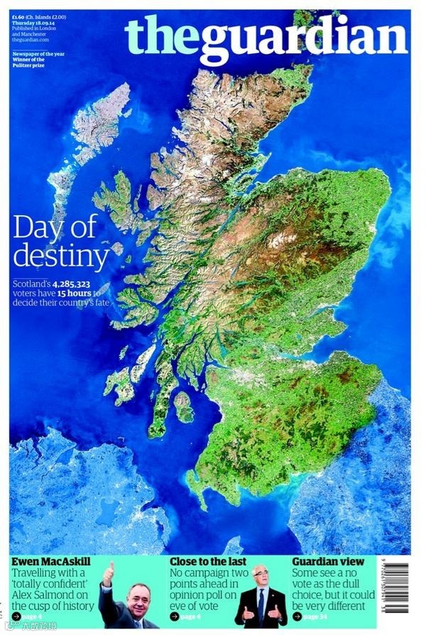 1、《卫报》的大标题是“决定命运的一天” (Day of destiny).