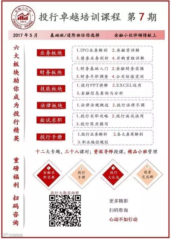 金融小伙伴致力于搭建一个金融垂直领域职业信息分享和交流公益平台,通过持续不断的公众号推文和线上线下活动,提供及时、全面、高效的行业招聘信息和职场提升经验。目前,我们已吸引了超过100万粉丝,在海内外金融学子和在职人士中均享有盛誉。