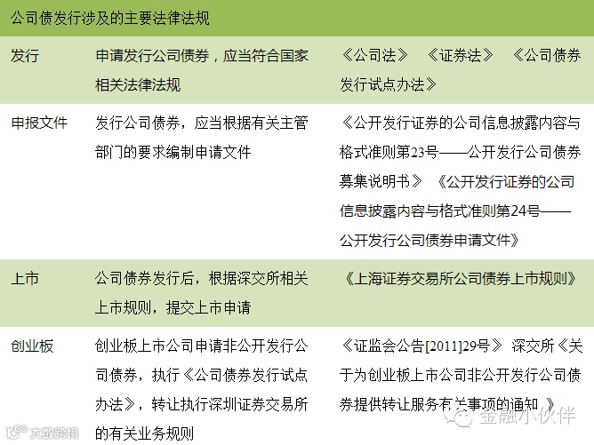 2007年8月14日,证监会发布《公司债券发行试点办法》,正式启动公司债券的发行,上 市公司首先作为发行试点。发行公司债券所涉及的主要法律法规如下:
