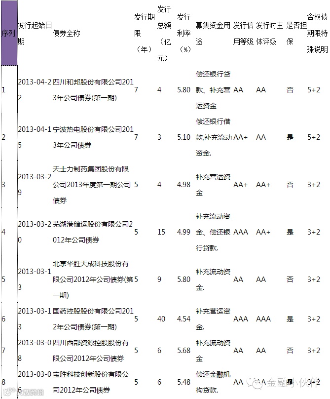 3.1 公司债券主要条款示例-2013年上交所最新公司债券情况