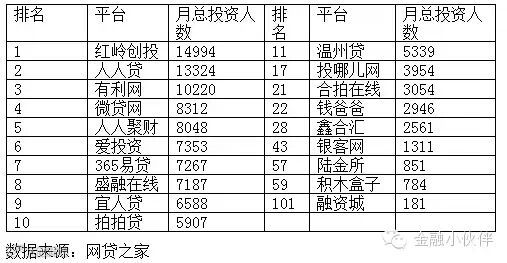 关于投资人数,各个平台的统计数据差不多,网贷之家的数据是截止2014年6月底32万人左右,而易P2P网贷研究院的数据是44.36万人。
