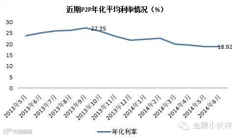 P2P平均利率在下降,2014年6月为18.92%,大平台利率要更低,一般在10%-15%之间。