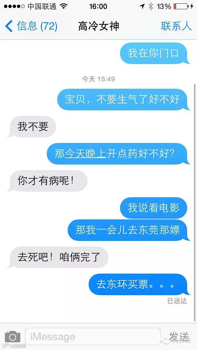 可以理解女神平时不爱回短信,所以千载难得回复了一条难免让人心神摇荡。但是这个时候,一定要hold住,宁可不说话,也不要说错话。