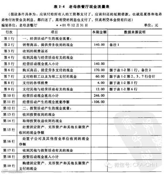 下面,我们先来列示一下老母亲餐厅聚餐经营后的现金流量表,如图1-4所示: