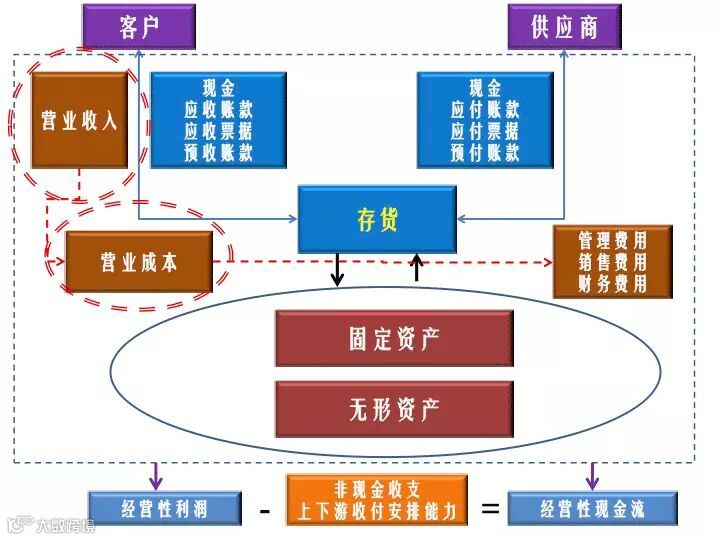 我们的上游是供应商,跟供应商有关的财务指标是现金、应付账款、应付票据和预付账款,跟我们的下游就是客户最主要的指标一个是营业收入,一个是现金,还有应收账款、应收票据和预收账款。所以我们今天在讨论上下游的关系时候,我们主要也是讨论这些财务指标。