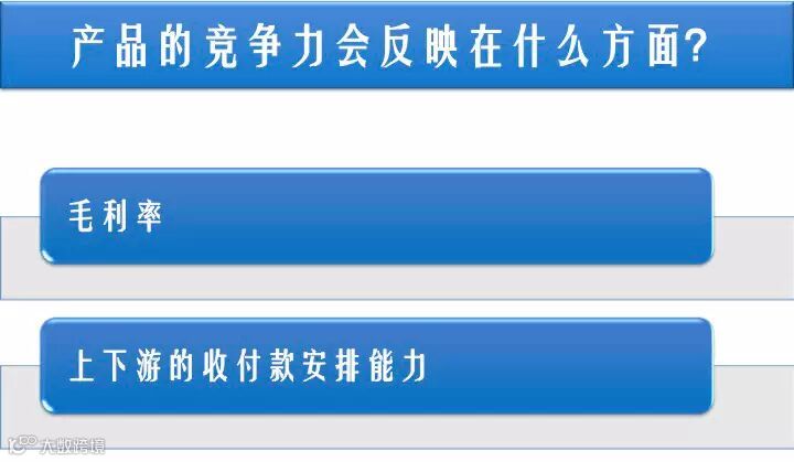 那一个产品的竞争力会反映在什么方面呢?第一是毛利率,第二是上下游的收付款安排能力。