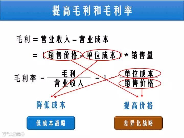 如果我们为了提高毛利和毛利率有什么方法,其实就是有两种方法,一种方法就是把我们的价格提高,一种方法是把我们的单位成本下降。为了提高毛利率,要么我们降低成本,走的是低成本战略。要不提高价格,我们采用的是差异化战略。所以这也是为什么毛利是跟业务战略有关的。