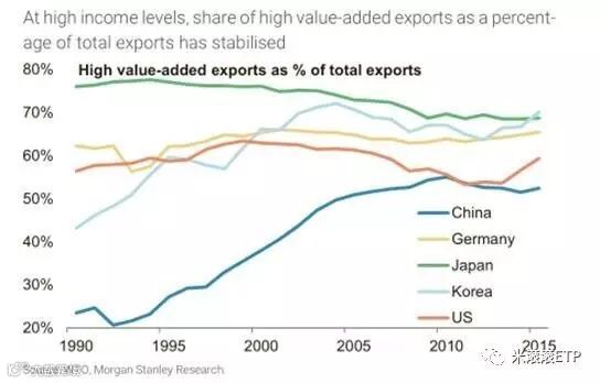 中国劳动力成本的上升,使中国在低端制造业的竞争力逐步下降。中国正加快高附加值制造业的发展,高附加值产品出口增长超过50%,特别是像电子产品和集成电路元件(转换器和LCD显示屏)等中高端技术产品,这些产品正逐步馋食日本和台湾市场份额。报告指出,中国将大力发展资本密集型产品和电子产品。同时,企业品牌将获得更广泛的认同。