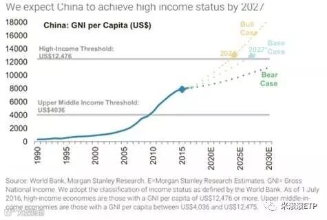 很多分析师认为通胀压力可能较大程度减少实际收入,大摩研究认为人均收入在未来十年可能增长缓慢,但随着中国经济结构的不断转型。中国将避免中等收入陷阱,2027年将步入高收入国家。