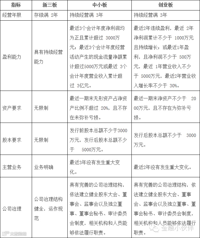 九、新三板、中小板、创业板挂牌条件对比