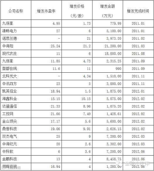截至2012年12月31日,共有42家新三板挂牌公司完成了51次定向增资,共增资19.88亿元,平均每次募集 3898万元,剔除 3家亏损和接近亏损公司,平均市盈率为19.77倍。