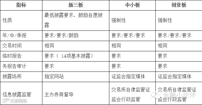 十一、新三板、中小板、创业板信息披露对比