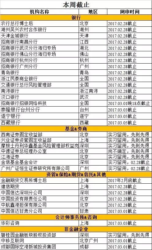 求职实习信息整理:金融小伙伴