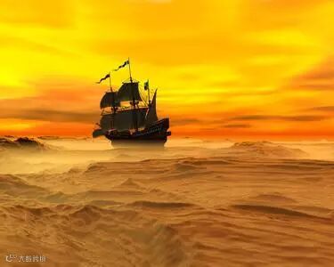 一只船孤独的航行在海上