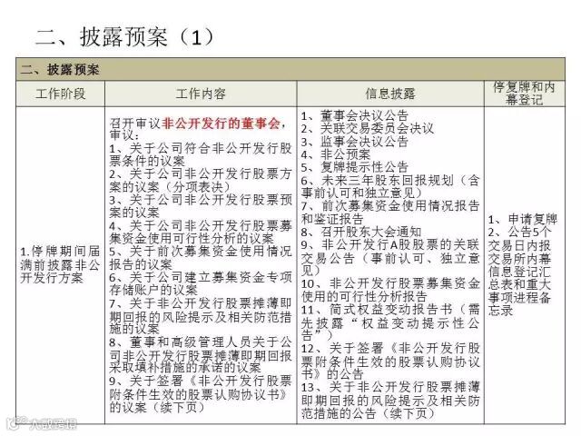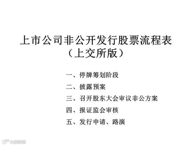 非公开发行股票是指上市公司采用非公开方式,向不超过10名特定对象发行股票的融资行为。作为融资方式之一,目前广为上市公司所采用。但在实务操作过程中,由于法规对流程规定较细,,容易出现操作漏项,造成违规。因此,我仔细梳理了相关法律法规,并结合自身工作实践,将非公开发行股票流程进行图表化,看起来清晰明了,以供参考交流。