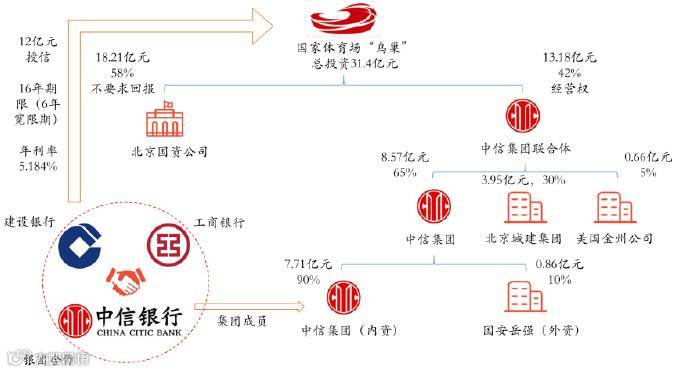 “鸟巢”项目总投资共计31.4亿元人民币,北京市国有资产有限责任公司出资58%,中信集团联合体出资27.3%,加上北京城建集团的12.6%以及美国金州公司出资2.1%。北京市政府作为项目的发起者和项目结束后的实际拥有者,以PPP项目的方式发起项目建设,同时北京市政府提供低价的土地和18.154亿元的无偿补贴。而中信集团联合体作为项目公司的股东的同时,集团旗下中信银行与工商银行和建设银行共同组成银团为项目公司提供12亿的贷款。这样一来,在投贷模式下,中信联合体同时作为股东和债权人,不仅可以参与项目的管理和监督,凭借自身在项目运作上的优势把握项目建设运营的质量,还降低了自身的贷款风险。