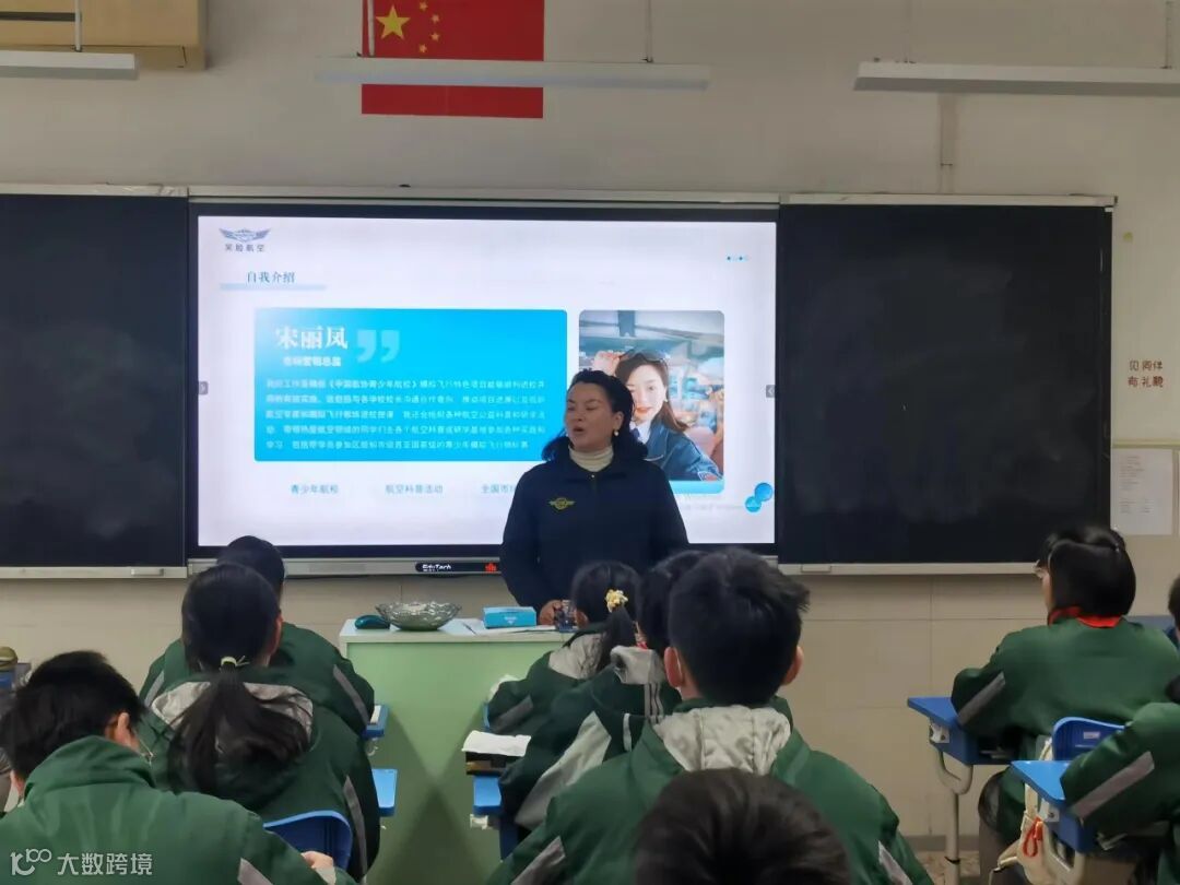 当笑脸航空依依受到奉浦中学七年级班主任池老师的邀请,来到这个充满活力的班级分享自己的职业经历而感到无比荣幸和兴奋。这是一个难得的机会,让依依能够与年轻的心灵交流,分享自己在航空模拟飞行行业的所见所闻和心得体会。
