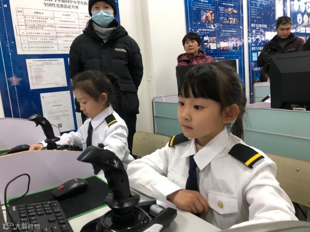 模拟飞行教室里,小朋友们好奇地抓着摇杆,认真地听教练讲解航空知识,仿佛自己真的在驾驶飞机翱翔天际。