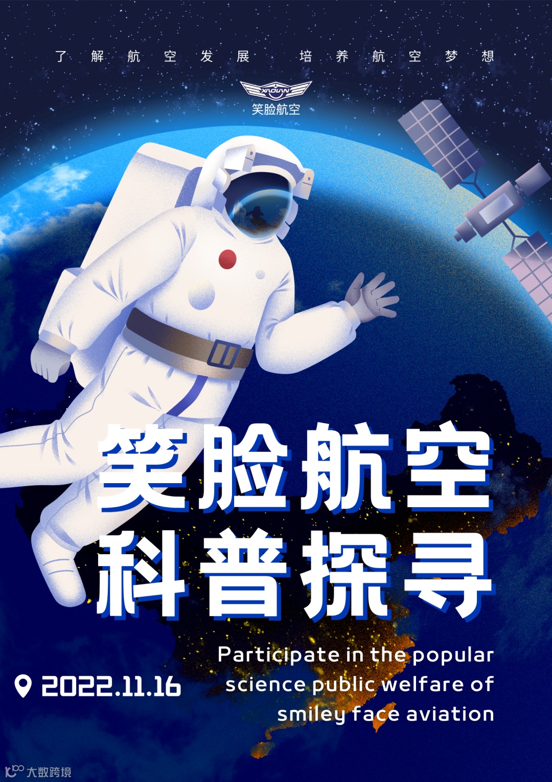 本周六(2022年11月19日)笑脸航空将举办第二十八场航空公益科普活动,报名信息如下: