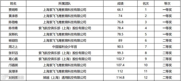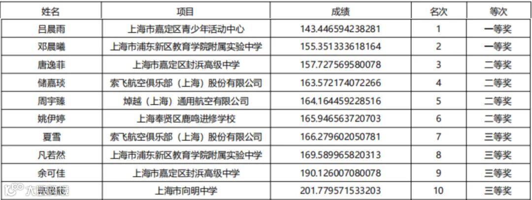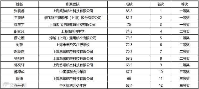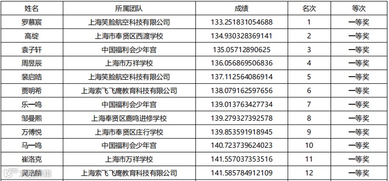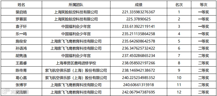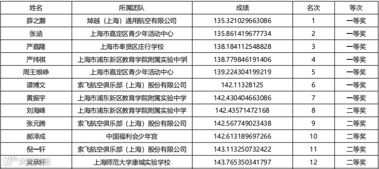 2023年全国青少年模拟飞行挑战赛(上海站)成绩已出,现公布如下:
