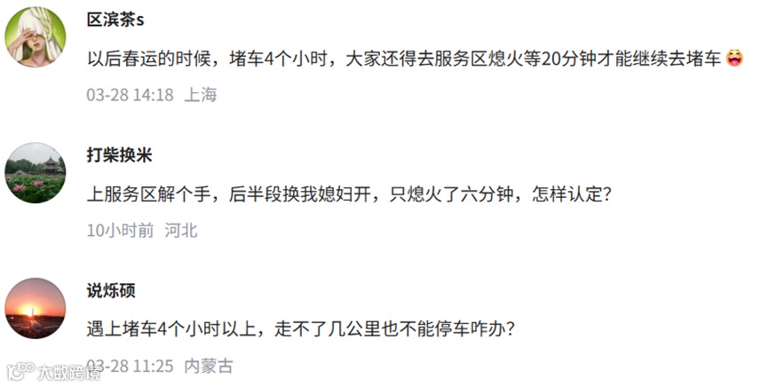 有网友担忧节假日高速拥堵时难以满足休息要求:"长时间塞车走走停停,根本无法计算休息时长。服务区停车位紧张,下高速停车还影响当地民生。"